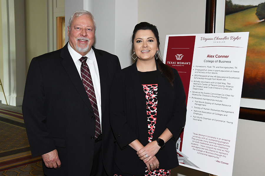 Dr. Carine Feyten, TWU Chancellor and President, began her remarks with “when you believe in something, the stars align.” She thanked Bank of Texas and the TWU Foundation Board and others stating she could not imagine TWU without this event and credited Virginia Chandler Dykes as an inspiration to everyone. She announced that the luncheon has raised almost $1 million for scholarships through the years and this year alone raised $110,000. She also recognized the five 2020 Virginia Chandler Dykes Scholarship recipients: Lou Ann Hintz of Lubbock, College of Health Sciences; Nisha Mathews of Houston, College of Nursing; Aubree Evans of Denton, College of Arts and Sciences; Alex Conner of Burleson, College of Business; and Lorna Durrant of Cleburne, College of Professional Education. Each will receive a scholarship award worth $4,000.