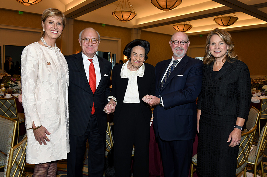 Bob White, executive vice president of Bank of Texas, recounted the bank’s history with the luncheon and introduced past Virginia Chandler Dykes Leadership Award recipients in attendance: Mary Brinegar (2014), Ralph Hawkins (2015), Kathleen Mason (2010), Dale Petroskey (2019), and Kern Wildenthal (2006). He recognized the scholarship students “whose hard work and service make the world a better place” and credited Dykes for her leadership, concluding how “we are all honored to be a part of what you started so long ago.”