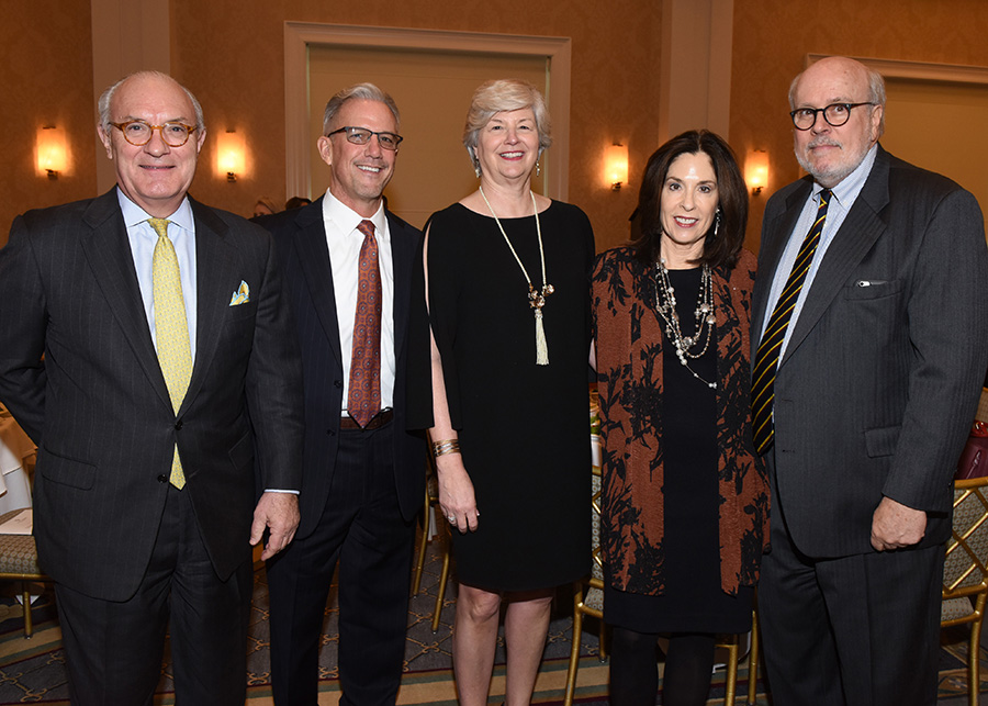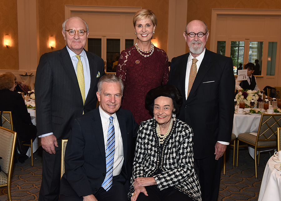 (front) Dale Petroskey, 2019 recipient of the Virginia Chandler Dykes Leadership Award; Virginia Chandler Dykes; (back) Bob White, Bank of Texas, presenting sponsor; Dr. Carine Feyten, chancellor and president, TWU; and Ralph Hawkins, luncheon chair and 2015 recipient of the Virginia Chandler Dykes Leadership Award