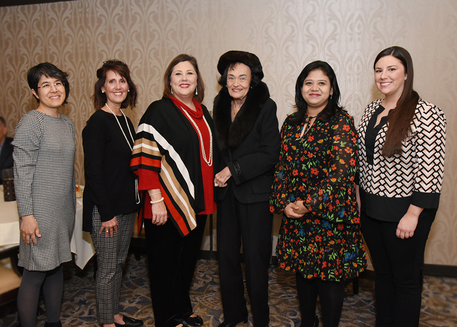 All Scholarship Recipients with Virginia Chandler Dykes: Janice Kishi Chow, Patricia Flint, Amie Bedgood, Virginia Chandler Dykes, Paramita Basu, Meghan Labiak